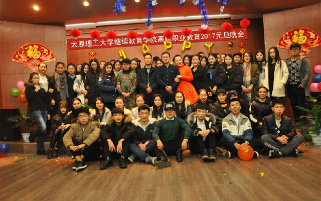 12月29日晚,我院高端职业教育项目“不忘初心 一起前行”2017年元旦晚会在太原理工大学继续教育学院行政楼三层多功能厅隆重举行。院党委书记杨学成,党委副书记孙善海,院高端职业教育项目招生就业办主任刘峰,招生办主任巨丰收出席晚会。广大师生一同观看了演出。