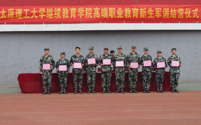 最后,我院高端职业教育招办主任表彰了军训队列获奖人员名单;并给优秀队长、队员现场颁奖;军训结营大会在仪式主持带领下落下帷幕。