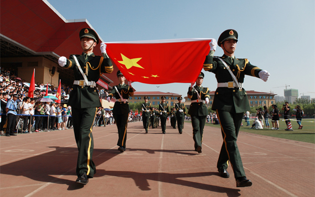 开幕式后,国旗方阵、校旗方阵、会旗方阵、军乐队、花队、旗队以及各学院代表方阵依次入场,精神饱满、口号铿锵、步伐整齐地从主席台前走过,展现了理工大人昂扬向上、拼搏进取的体育精神。 “党团先锋”“学风示范”“勤工榜样”“志愿服务”“创新表率”“学子骄傲”六个主题展示方阵,是对我校贯彻落实全国高校思想政治工作会议精神,实现全员育人、全过程育人、全方位育人、全课程育人、全媒体育人成果的全面展示。随后,大会举行了升国旗仪式。