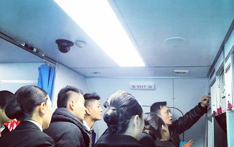 每年,航空公司新入职的乘务员都要来到两个多月的培训。包括民航法、应急医疗、民航英语、应急撤离、服务流程与各类理论考核。