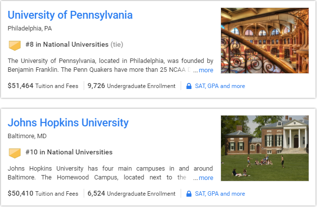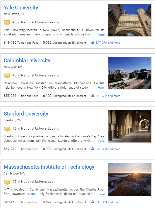 2017USNews综合性大学排名TOP10: